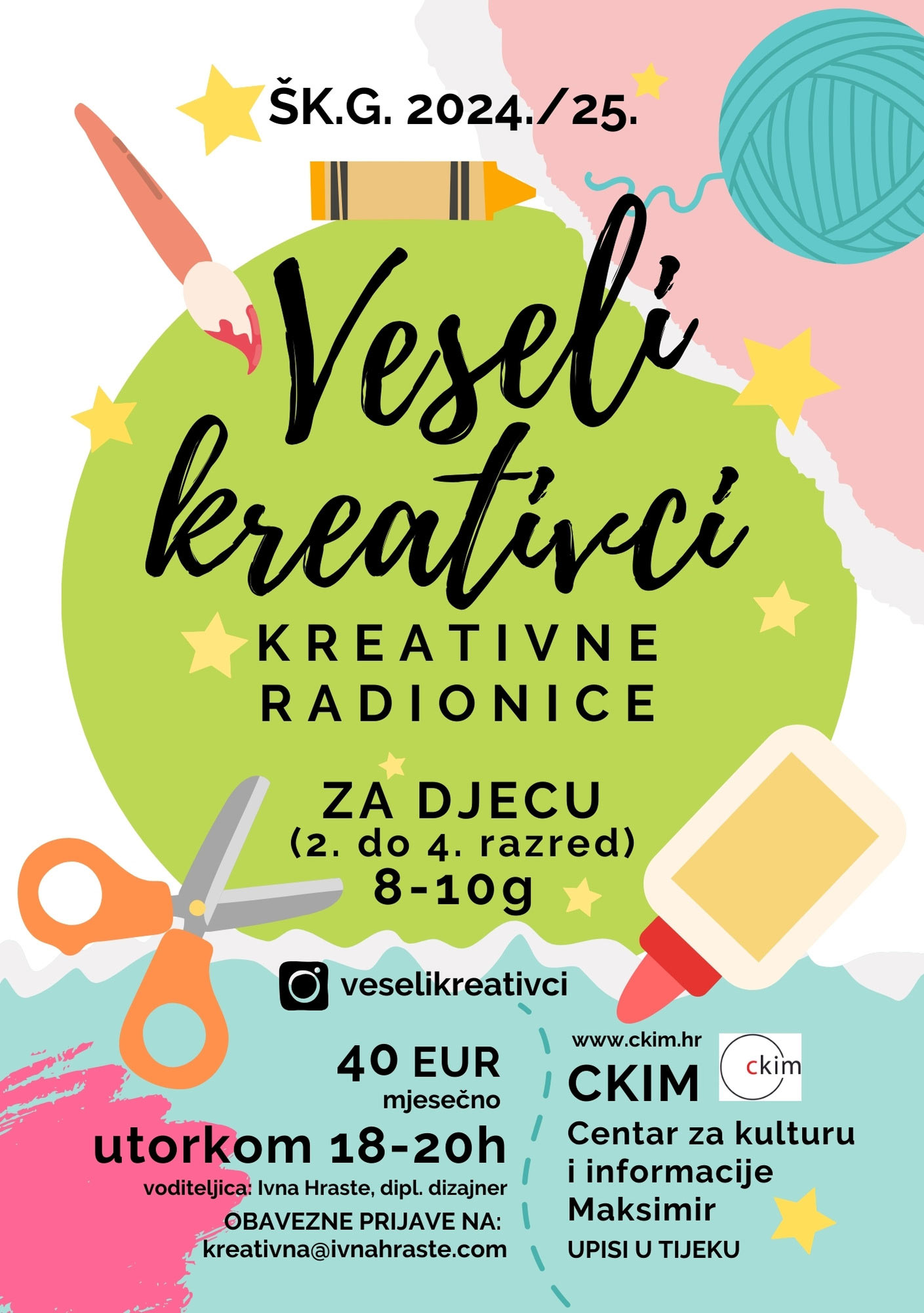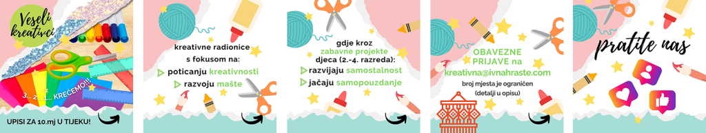 “Veseli kreativci” su radionice likovnih i primijenjih umjetnosti za djecu s ciljem poticanja kreativnosti i razvoja mašte kroz rad rukama.